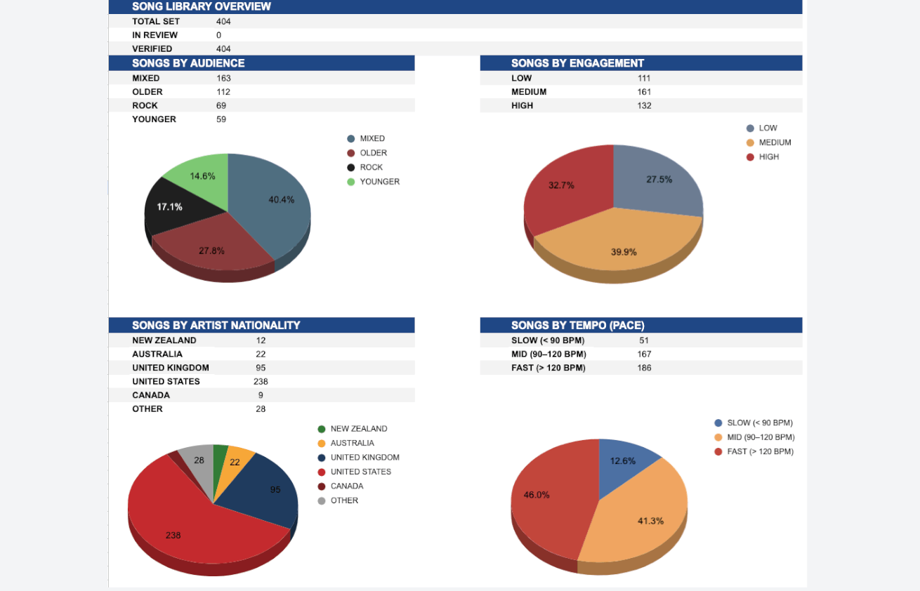 A high-level overview of how your song list is balanced.